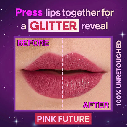 The Wet n Wild Mega Glitter Shimmer Liquid Lipstick Pink Future brings the wow factor to your lips with a unique formula that truly transforms! This innovative liquid lipstick starts with a matte finish and turns into a dazzling glitter look when you press your lips together – how cool is that?