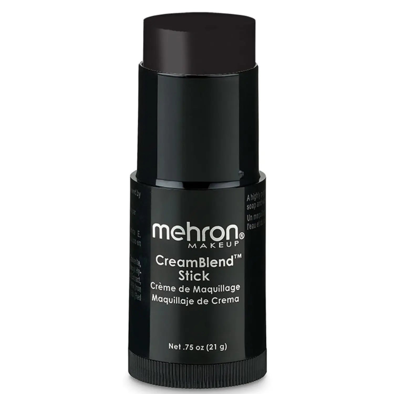 The Mehron Makeup CreamBlend Stick Black is an iconic, pro-loved cream makeup in convenient stick form. This highly pigmented formula provides full coverage and is specially designed to withstand extreme conditions such as intense stage lighting or long shoot days. Whether you’re performing on stage, bringing a cosplay character to life, or creating a bold Halloween look: this stick does it all.