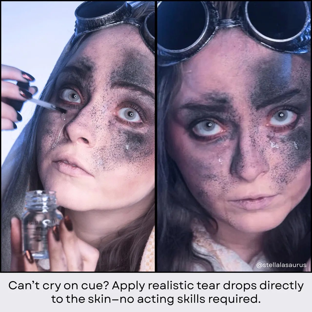 Apply easily with the brush or sponge using a dabbing motion for subtle moisture beads. Want more drama? Layer it up for bigger drops. A small drop in the corner of the eye instantly gives that tearful effect. A must-have for SFX artists, performers and anyone wanting to add extra drama to their look.