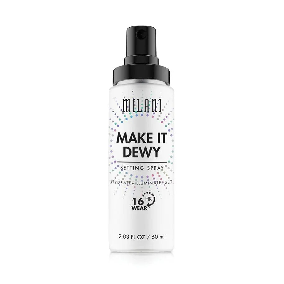 The Milani Make it Dewy 3-in-1 Setting Spray Hydrate + Illuminate + Set is a spray that acts as a primer and setting spray and moisturizes the skin while the spray has a brightening effect on the skin at the same time. This spray delivers just the right dose to boost your radiance with a cooling and refreshing feeling. Your makeup will stay perfectly in place all day long with this spray for up to 16 hours!