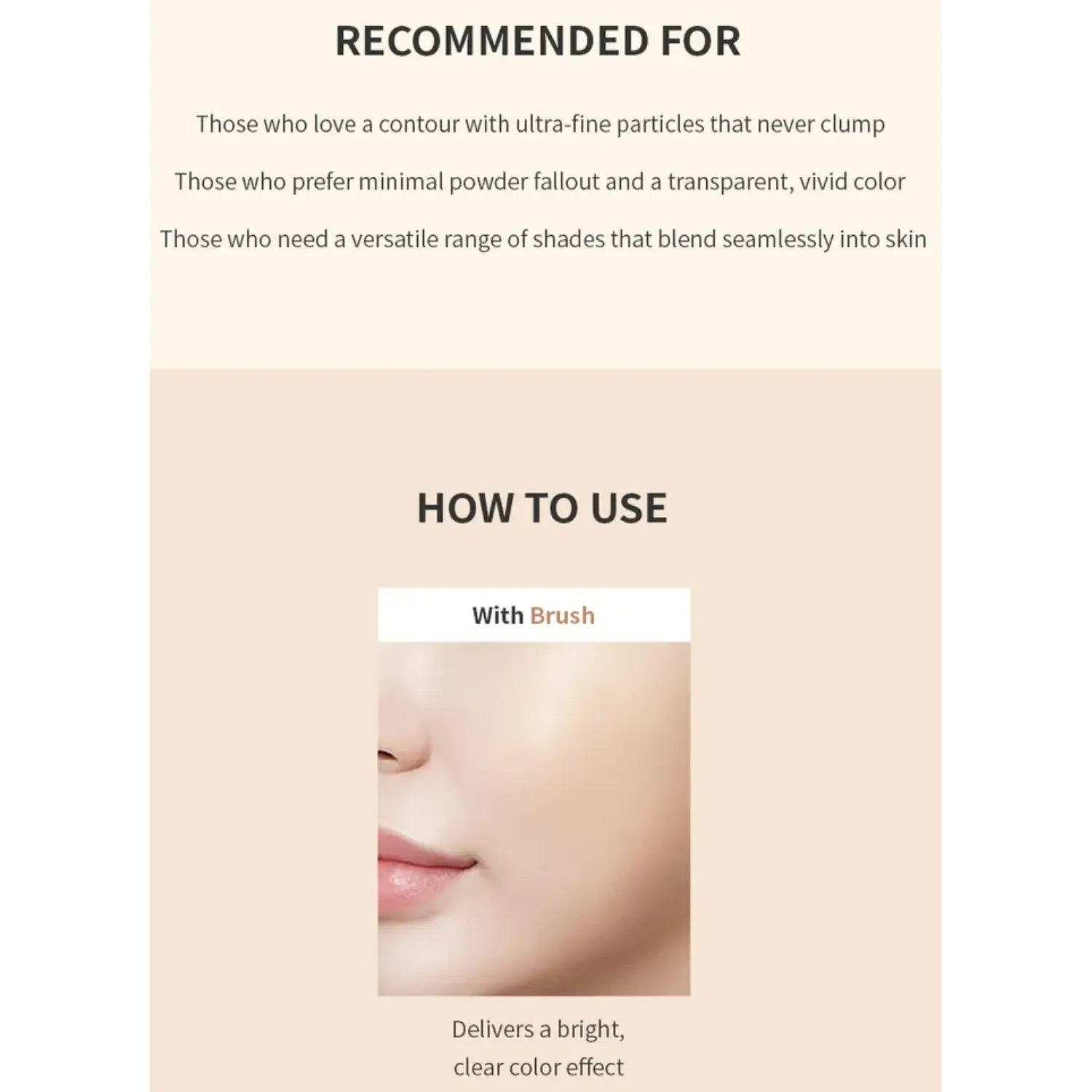 The Silky Elastic Powder technology ensures a long-lasting, oil-free finish that stays beautiful all day. Whether you prefer subtle shaping or a slightly more defined look, this contour is easy to build and adapts beautifully to your skin tone. Perfect for anyone who loves a clean, fresh, and effortless contour!