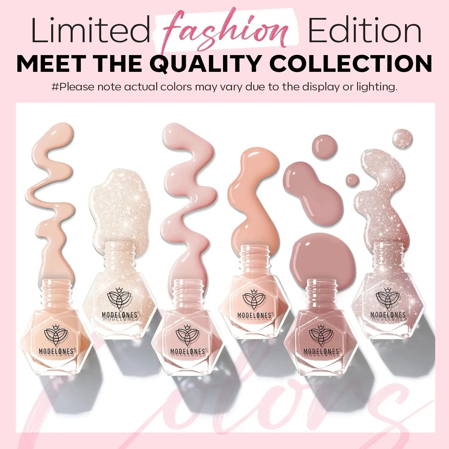 - includes soft pink shades with and without glitter