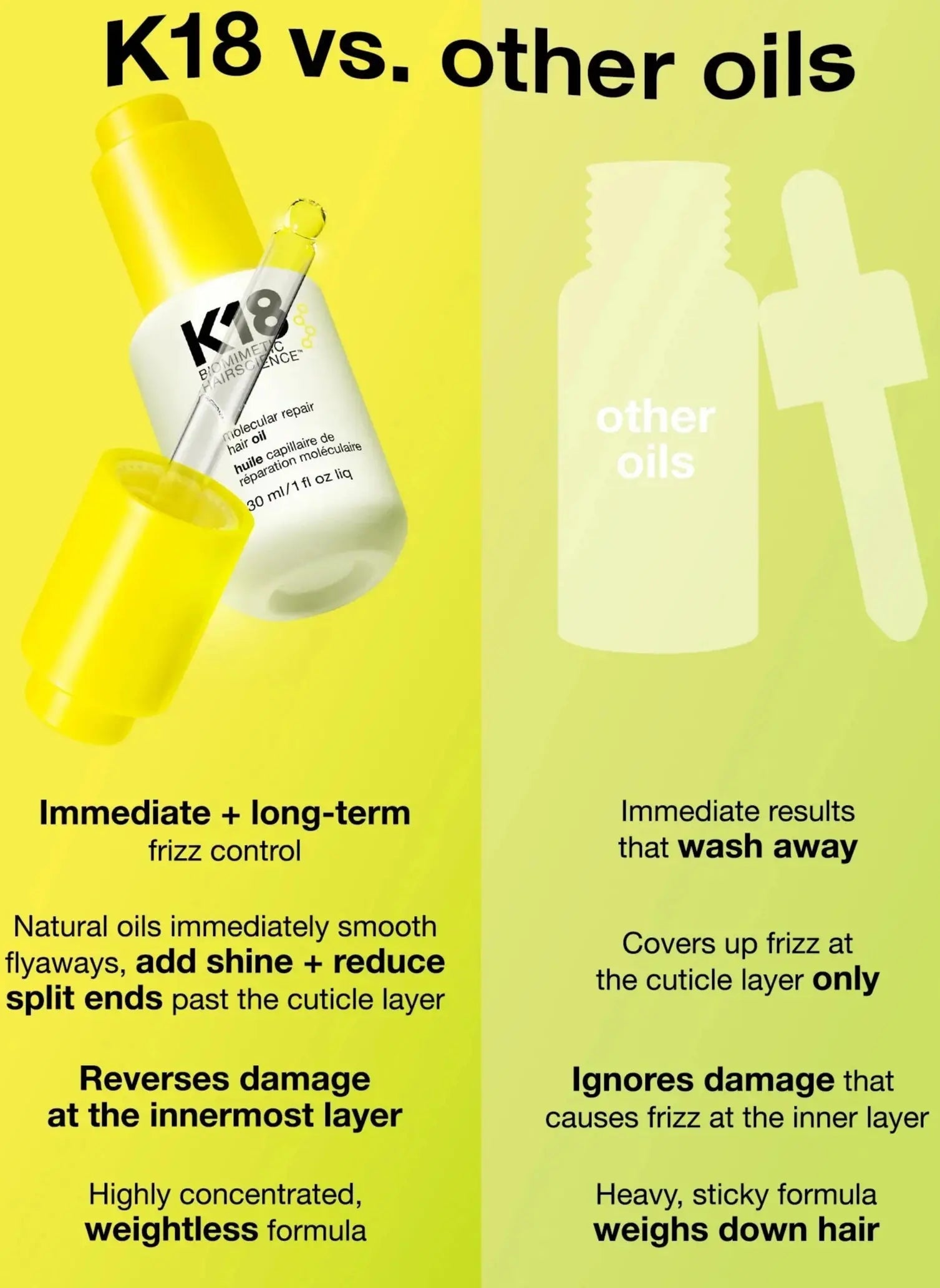 The K18 Molecular Repair Hair Oil is a silicone-free and weightless hair oil that combats frizz by tackling damaged hair from within. This hair oil repairs the hair, smoothes the hair and reduces frizz in the long term.