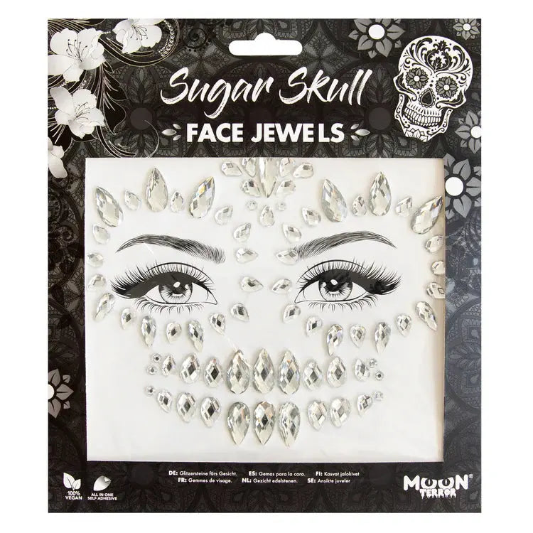 The Moon Creations Moon Terror Halloween Face Jewels Sugar Skull are the perfect finishing touch for your spooky glam look. With these self-adhesive face jewels, you’ll instantly create an enchanting vibe that’s sure to stand out, whether you're heading to a Halloween party, festival or photoshoot.