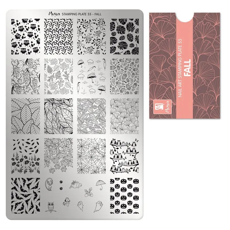 The Moyra Stamping No. 55 Fall is the perfect plate for cozy autumn vibes on your nails. Think leaves, twigs, fall patterns and stylish details that help you create a warm, seasonal look with ease. This large-format plate is highly detailed and works beautifully for both beginners and pros.