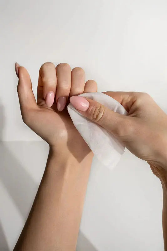 - Take one wipe from the packaging and close it tightly to prevent drying out.