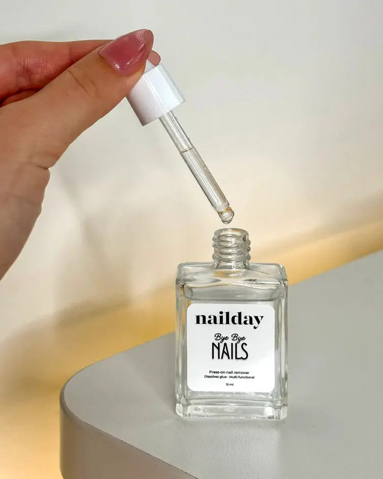 The Nailday Bye Bye Nails Press-on Nail Glue Remover is your lifesaver when it’s time to safely remove your press-on nails. This remover is specially developed to gently loosen glue residue without damaging your natural nails. No pulling, no forcing, just smooth and easy removal.