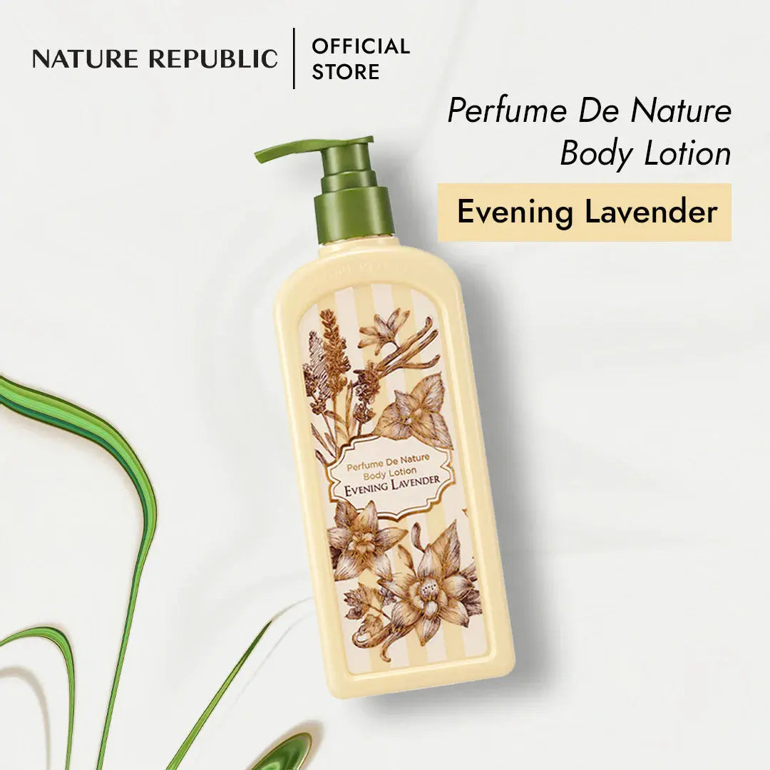 The Nature Republic Perfume De Nature Body Lotion Evening Lavender is a soothing body lotion that hydrates your skin and calms your senses. The silky texture spreads easily and absorbs quickly, leaving your skin soft, nourished and lightly scented.