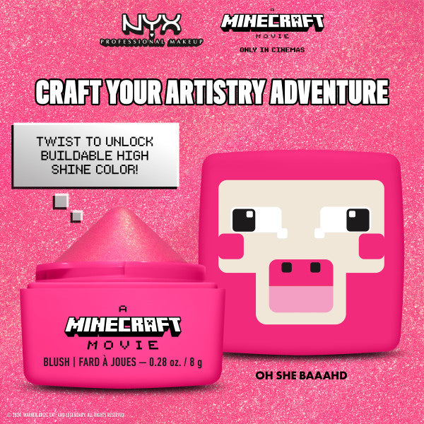 The NYX Professional Makeup A Minecraft Movie Cheeky Mob Balms Blush Oh She Baaahd is your new glowy sidekick for a fresh, radiant complexion. This creamy blush stick melts into your skin and gives your cheekbones a natural flush with a subtle glow. Thanks to the buildable formula, you can control the intensity of your look.