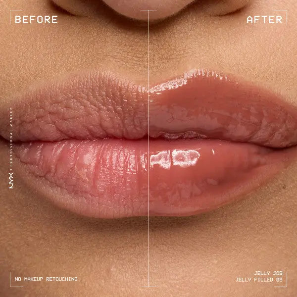 The NYX Professional Makeup Jelly Job Lipgloss Jelly Filled gives your lips an irresistible jelly shine with a juicy glassy finish that makes your look pop instantly. The innovative spatula applicator glides smoothly over the lips and evenly distributes the lightweight jelly soft formula for a juicy effect and visibly fuller lips.