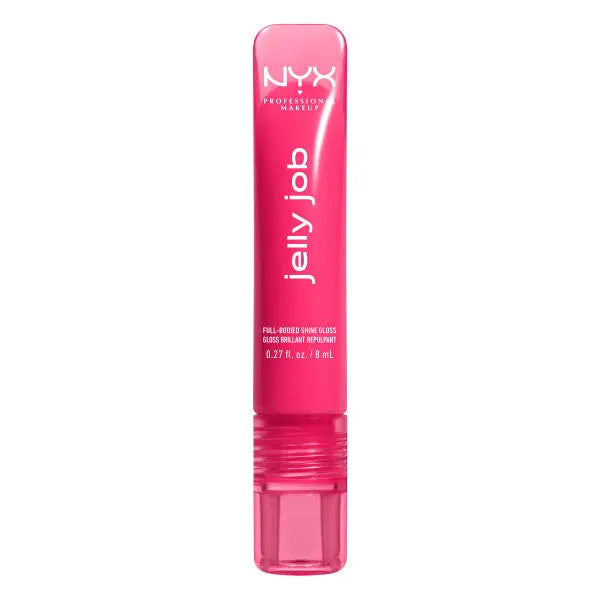 The NYX Professional Makeup Jelly Job Lipgloss Juice Jelly gives your lips a juicy glassy shine that instantly steals the show. With just one swipe, the spatula applicator glides smoothly over your lips and applies a jelly soft texture that delivers a full glossy pout. This innovative gloss feels lightweight and comfortable and makes your lips look instantly smoother and fuller.