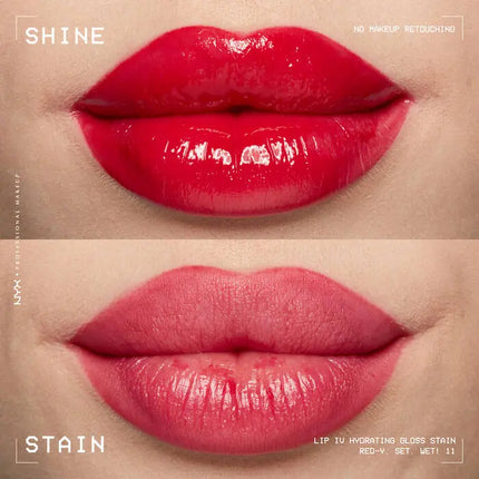 The NYX Professional Make Up Lip IV Hydrating Lip Gloss Ready Set Wet is a 2-in-1 lip gloss and lip stain that delivers ultimate hydration and a gorgeous wet-shine finish. Thanks to the vitamin infusion with magnesium, vitamin B12, and hydrating coconut water, your lips not only get an intense color but also stay hydrated for up to 12 hours. Perfect for a fresh, well-cared-for look!