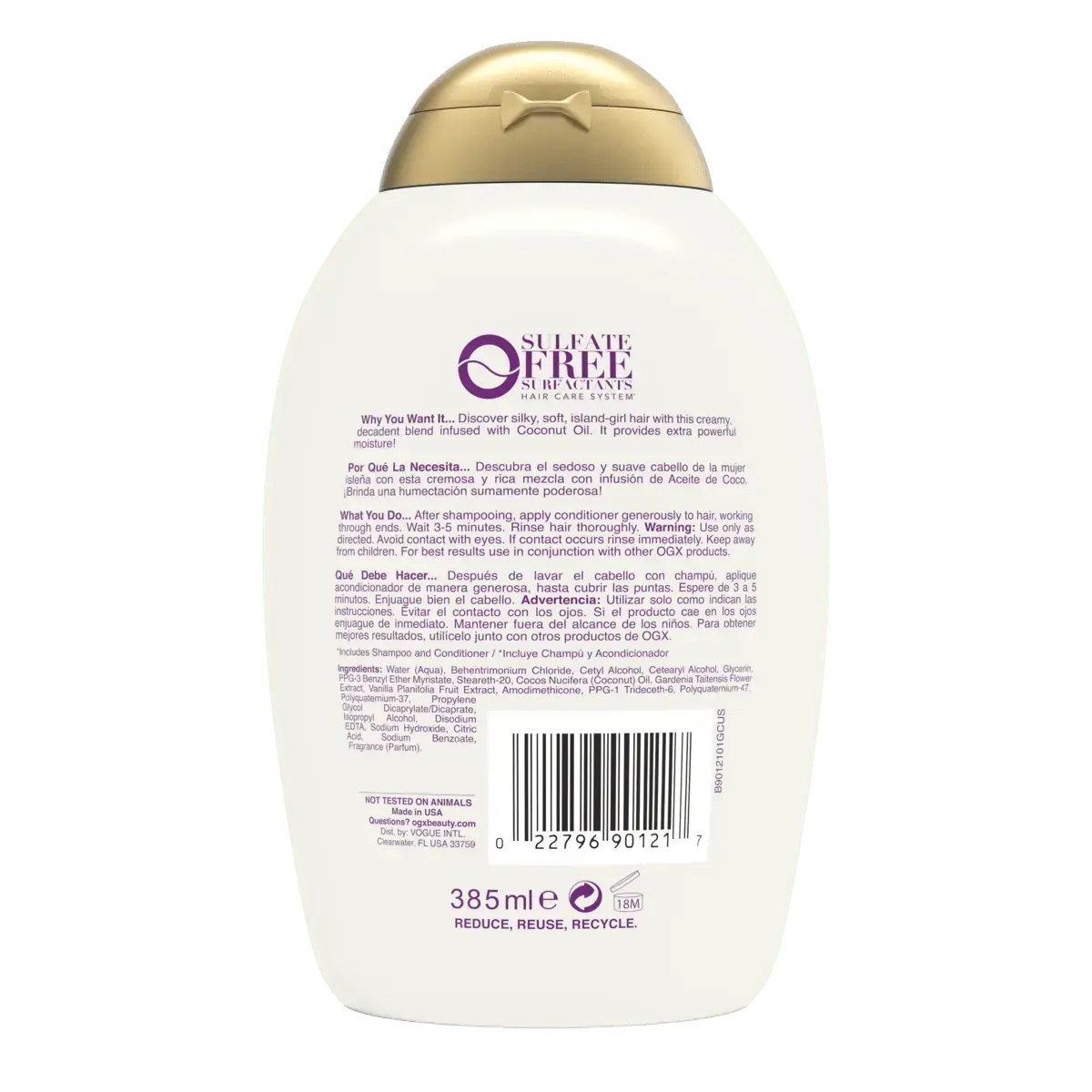 Water (Aqua), Cetearyl Alcohol, Cetyl Alcohol, Behentrimonium Chloride, Glycerin, Ppg-3 Benzyl Ether Myristate, Cocos Nucifera (Coconut) Oil, Gardenia Taitensis Flower Extract, Vanilla Planifolia Fruit Extract, Dimethicone, Polyquaternium-47, Steareth-20, Disodium Edta, Isopropyl Alcohol, Citric Acid, Sodium Hydroxide, Sodium Benzoate, Frag rance (Perfume).