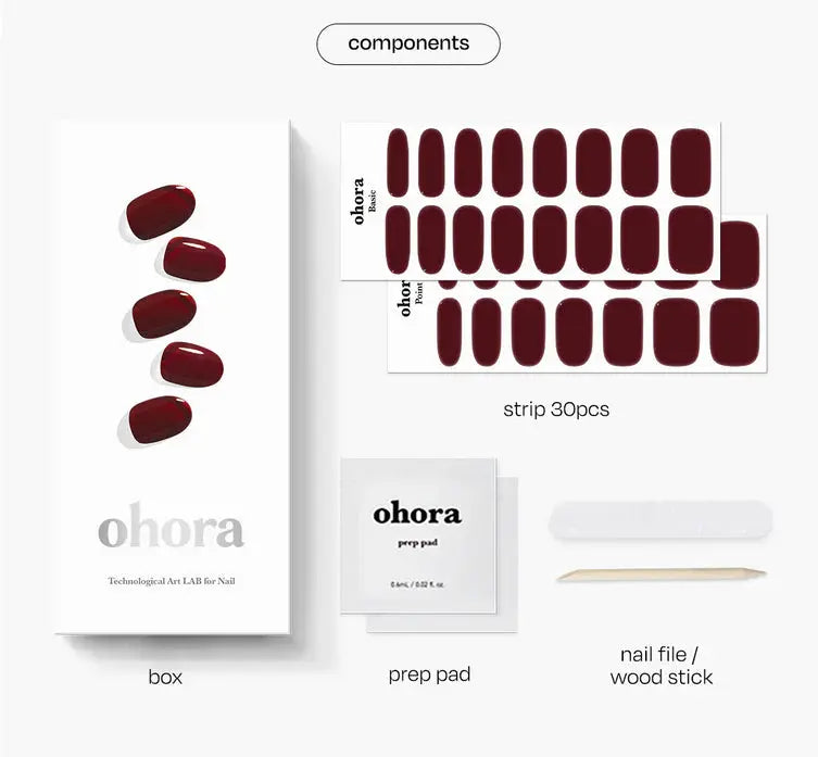 The Ohora Semi Cured Gel Nail Strips N Classic Burgundy offer a professional gel manicure experience right in the comfort of your own home! With these Gel Nail Strips you can effortlessly create beautiful, long-lasting nails with a shade that complements any look. Thanks to the semi-cured design, they are easy to apply and fit the shape of your nails perfectly. The unique C-shape ensures that they lie well on the entire nail bed.