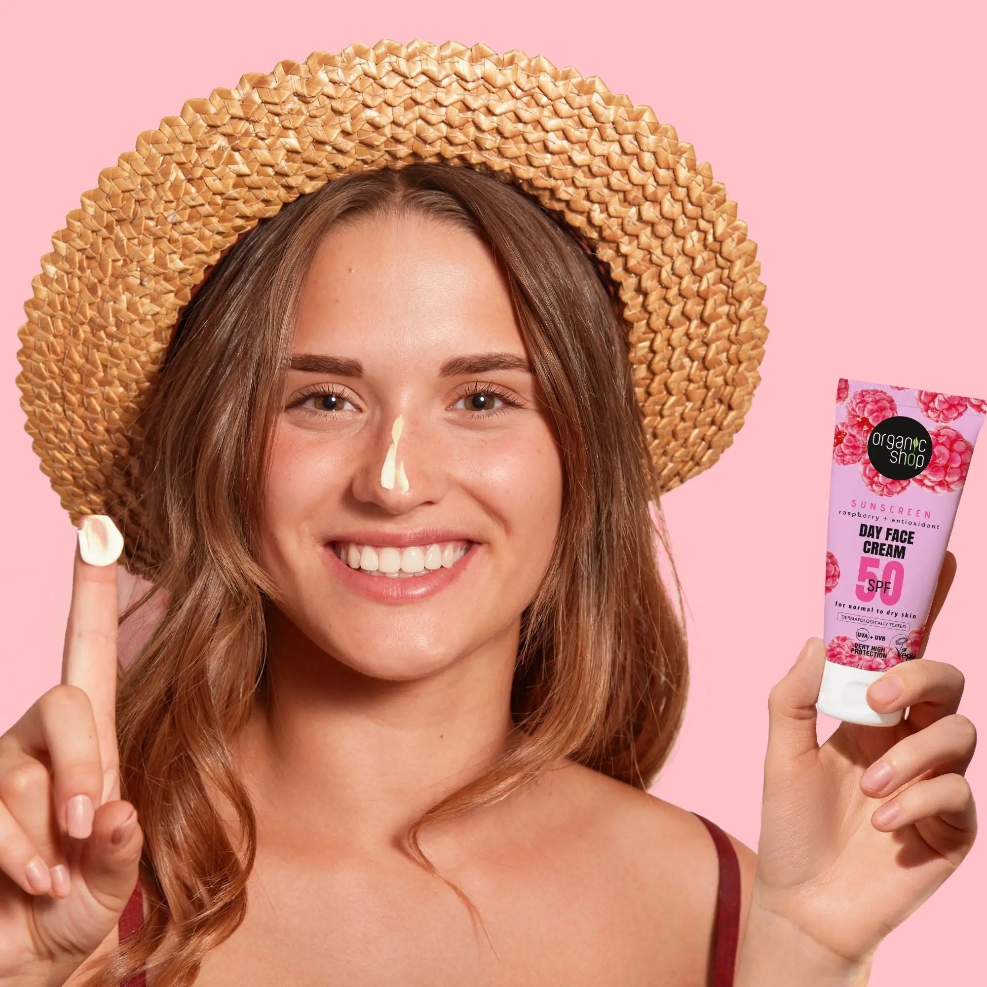 The Organic Shop Sunscreen SPF 50 Day Face Cream Normal To Dry Skin is your daily protection against the sun and premature skin aging in one handy tube. Specially developed for normal to dry skin, this sunscreen provides very high UVA and UVB protection.