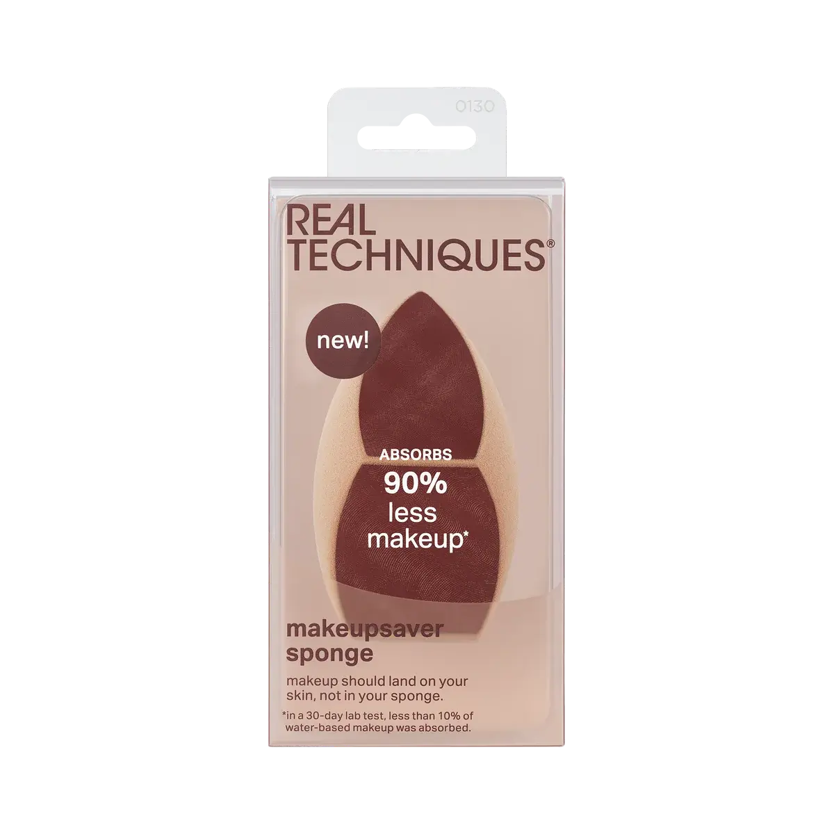 The Real Techniques Makeup Saver Sponge is the game changer for your makeup routine! Thanks to the innovative fingerprint technology, this sponge absorbs up to 90% less foundation than a regular makeup sponge, so you get even more out of your favorite products. Your makeup stays where it belongs, on your skin, not in your sponge!