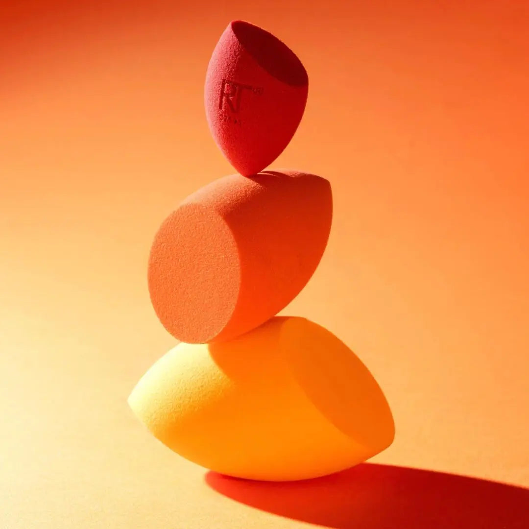 The Real Techniques Sunsoaked Sponge Trio is a set of three versatile makeup sponges for perfect application of foundation, concealer and other liquid or cream products.
