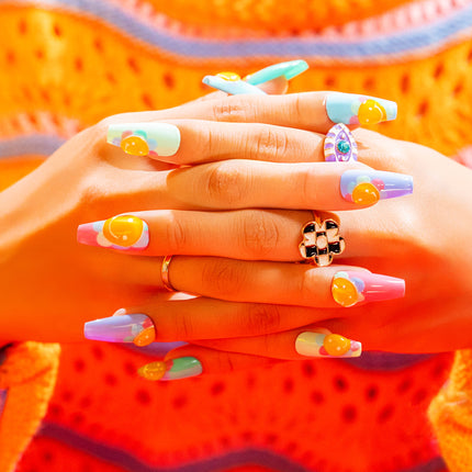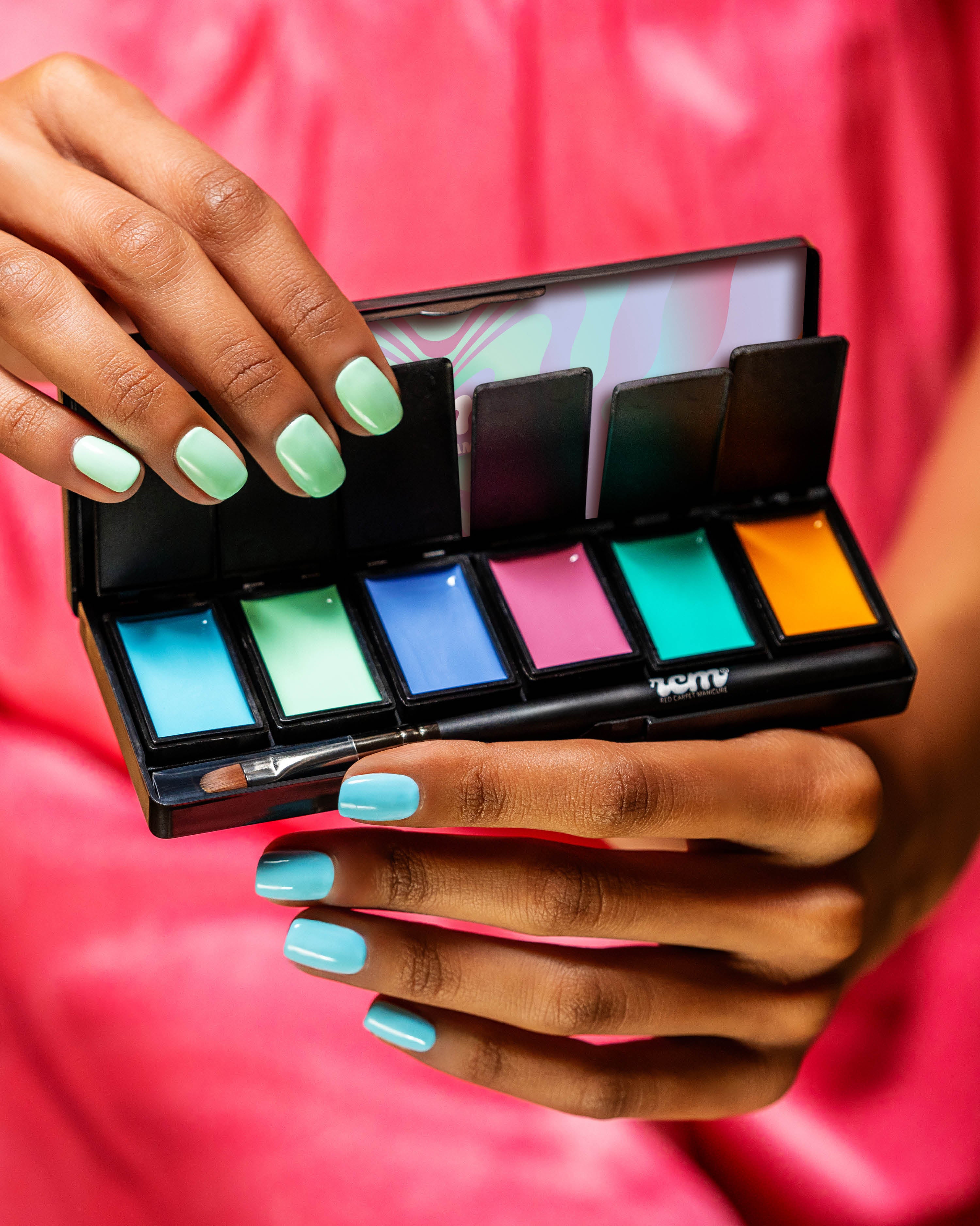 The Red Carpet Manicure Cream Gel Palette Positively Pastel is a compact, creamy gel set that makes your manicure routine effortless and professional. Thanks to the solid cream gel formula, the gel stays perfectly in place during application – no mess, no cuticle flooding, even when using your non-dominant hand!