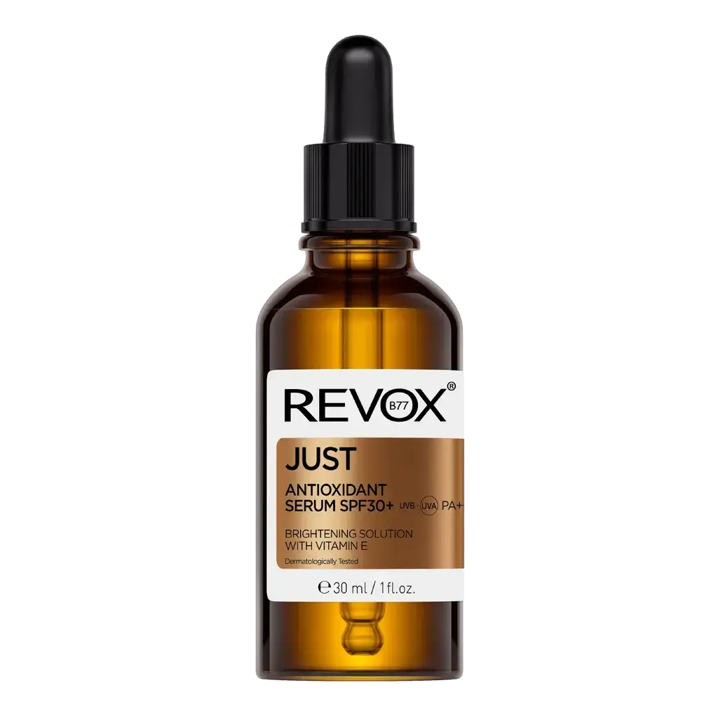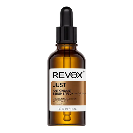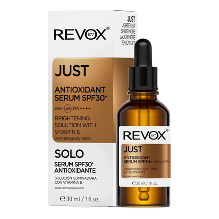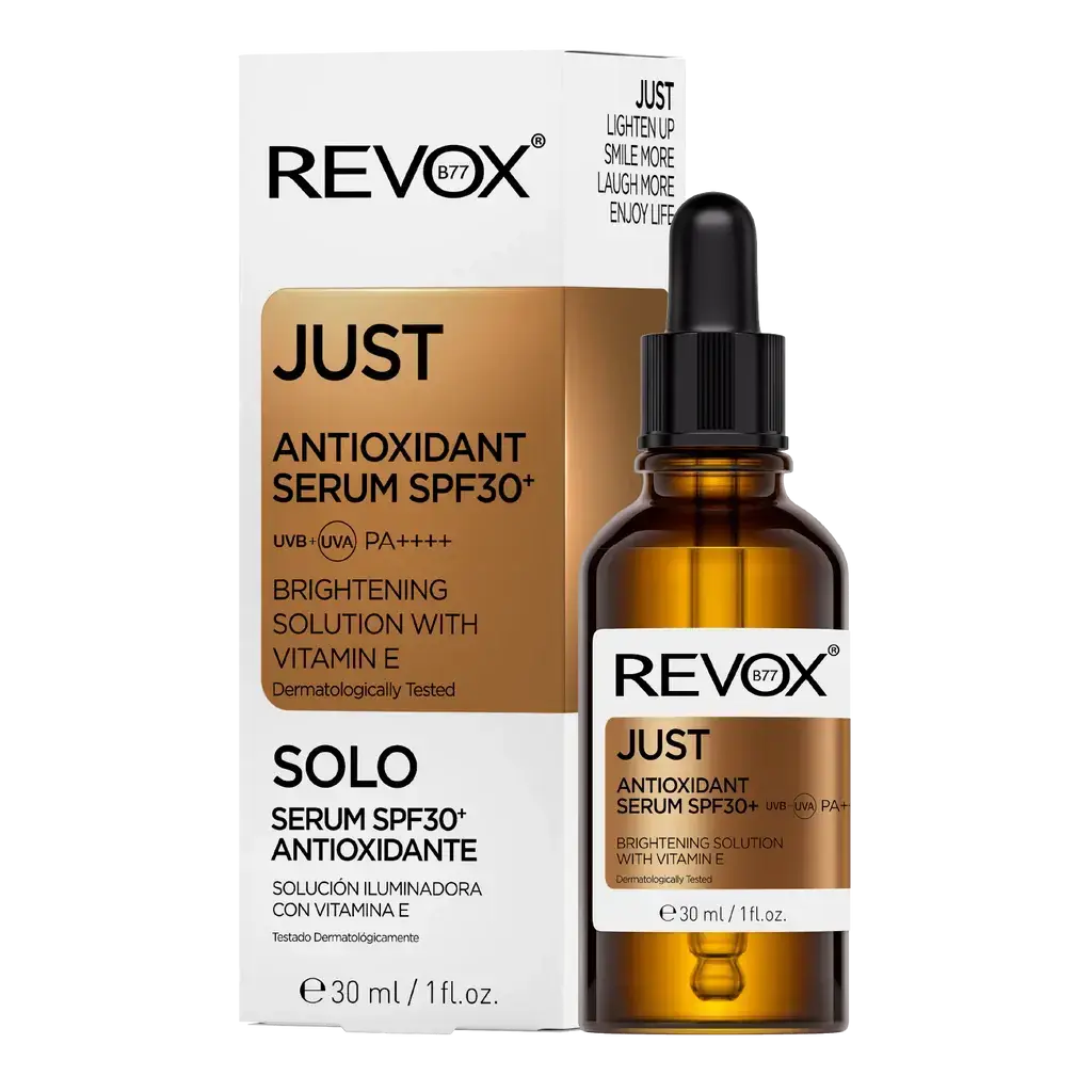 The Revox Just Antioxidant Serum SPF 30+ is a brightening and smoothing solution for the face and neck. This serum protects the skin from harmful external factors, such as pollution and UV rays, which can lead to pigmentation and premature aging. With powerful antioxidants, it reduces fine lines and helps keep the skin resilient.