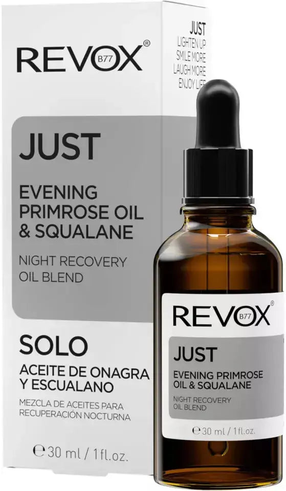 The Revox Just Evening Primrose Oil & Squalane is the must-have for your evening routine! This nourishing blend combines oils such as evening primrose oil, rosehip oil and grapeseed oil, all rich in linoleic acid. This essential fatty acid intensely hydrates and helps strengthen the skin barrier.
