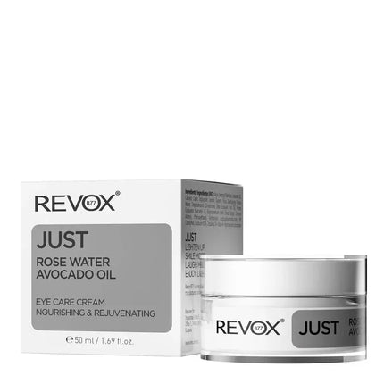 The Revox Just Rose Water Avocado Oil Eye Care Cream is a deeply nourishing eye cream that hydrates and protects your skin around the eyes. Enriched with rose water, avocado and olive oils, and shea butter, this cream helps to rejuvenate the skin and restore a natural radiant complexion.