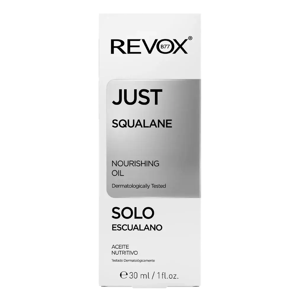 The Revox Just Squalane is a nourishing oil for face and neck that provides deep hydration and a healthy, soft appearance. Squalane, a derivative of the natural squalene that our body produces itself, helps to intensely nourish the skin, improve elasticity and combat dryness and dullness.