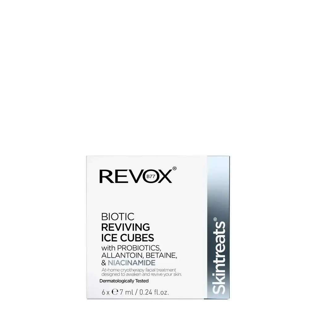 Revox Skintreats Biotic Reviving Ice Cubes offer a refreshing cryotherapy treatment that gives your skin an instant boost. These unique ice cubes are specially developed to revitalize the skin and give it a radiant appearance. Ideal for tired, dehydrated skin that could use some extra freshness! The cryotherapy of the ice cubes reduces morning puffiness and gives a youthful glow.