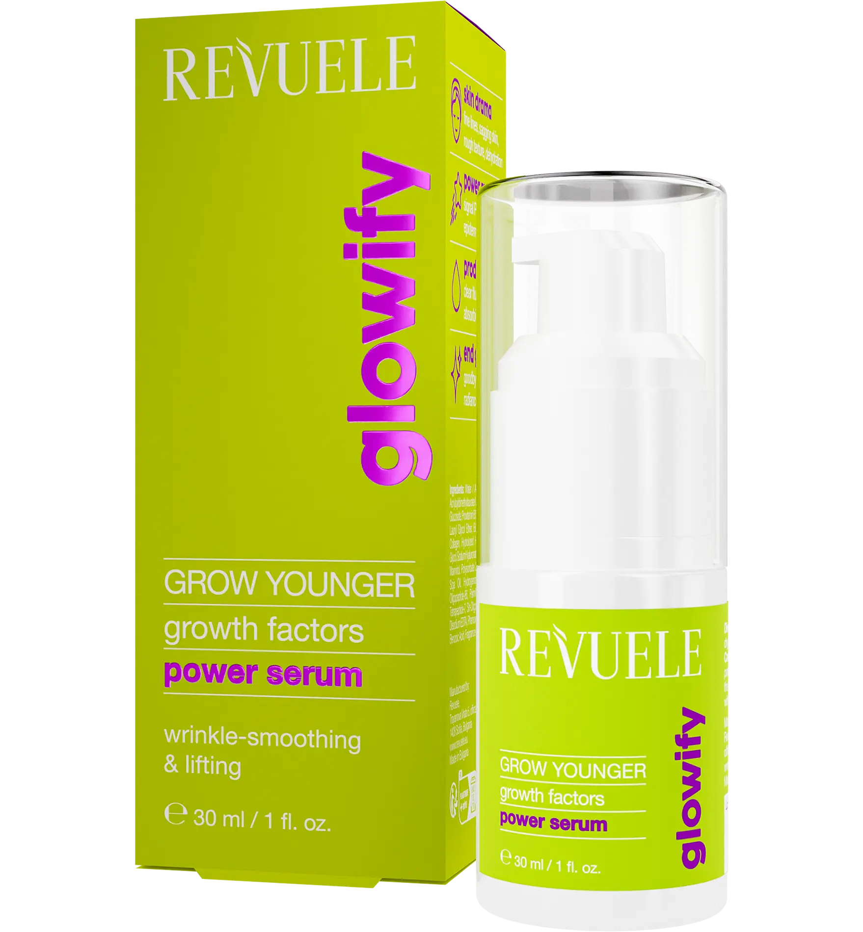 The Revuele Grow Younger Serum Growth Factors is your anti-aging boost in a bottle! This powerful serum visibly smooths wrinkles and gives your skin a tightening, lifting effect. Thanks to advanced growth factors, your skin gets that extra support to stay youthful, smooth, and firm.