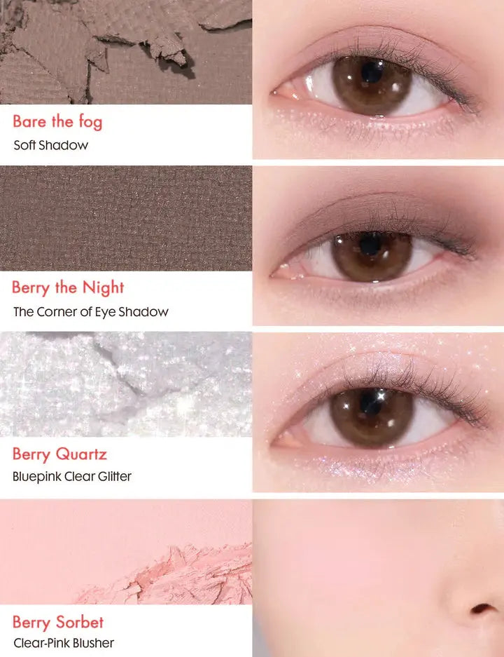 Talc, Mica, Polymethyl Methacrylate, Titanium Dioxide, Ultramarines, Lauroyl Lysine, Dimethicone, Octyldodecyl Stearoyl Stearate, Diisostearyl Malate, Magnesium Myristate, Isocetyl Myristate, Caprylyl Glycol, Kaolin, Glyceryl Caprylate, Iron Oxides, Ethylhexylglycerin, Iron Oxides, Manganese Violet, Triethoxycaprylylsilane, Hydrogenated Lecithin, Calcium Aluminum Borosilicate, Talc, Neopentyl Glycol Diethylhexanoate, Triethylhexanoin, Nylon-12, Polyglyceryl-2 Triisostearate, Dipentaerythrityl Hexahydroxystearate/Hexastearate/Hexarosinate, Hexyl Laurate, Hydrogenated Castor Oil Isostearate, Synthetic Fluorphlogopite, Caprylyl Glycol, Sorbitan Sesquioleate, Glyceryl Caprylate, Ethylhexylglycerin, Tin Oxide, Iron Oxides, Fragaria Vesca Seed, Mica, Titanium Dioxide, Polymethyl Methacrylate, Lauroyl Lysine, Dimethicone, Octyldodecyl Stearoyl Stearate, Diisostearyl Malate, Magnesium Myristate, Isocetyl Myristate, Iron Oxides, Triethoxycaprylylsilane, Hydrogenated Lecithin, Tocopherol, Talc, Titanium Dioxide, Mica, Ultramarines, Iron Oxides, Polymethyl Methacrylate, Lauroyl Lysine, Iron Oxides, Octyldodecyl Stearoyl Stearate, Diisostearyl Malate, Magnesium Myristate, Dimethicone, Triethoxycaprylylsilane, Isocetyl Myristate, Caprylyl Glycol, Iron Oxides, Glyceryl Caprylate, Ethylhexylglycerin, Hydrogenated Lecithin, Tocopherol, Magnesium/Potassium/Silicon/Fluoride/Hydroxide/Oxide, Nylon-12, Silica, Boron Nitride, Hexyl Laurate, Phenyl Trimethicone, Dipentaerythrityl Hexahydroxystearate/Hexastearate/Hexarosinate, Isostearyl Neopentanoate, Hydrogen Dimethicone, Calcium Titanium Borosilicate, Calcium Sodium Borosilicate, Talc, Diisostearyl Malate, Caprylic/Capric Triglyceride, Hydrogenated Castor Oil Isostearate, Polyethylene, Nylon-12, Tin Oxide, Caprylyl Glycol, Glyceryl Caprylate, Ethylhexylglycerin, Titanium Dioxide, Mica, Polymethyl Methacrylate, Lauroyl Lysine, Octyldodecyl Stearoyl Stearate, Dimethicone, Magnesium Myristate, Isocetyl Myristate, Iron Oxides, Triethoxycaprylylsilane, Hydrogenated Lecithin, Water, Sodium Chloride, Sodium Sulfate, Tocopherol