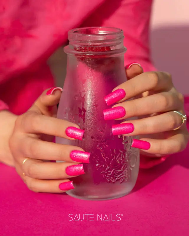 The Saute Nails UV Gelpolish S304 Juicy Berry is a juicy raspberry pink shade with an intense glitter shine that instantly makes your nails stand out. This summer must-have gives every manicure a feminine and playful touch and looks beautiful on every skin tone. Whether you opt for a subtle glitter accent or a full-on glamour look, Juicy Berry guarantees that wow effect.