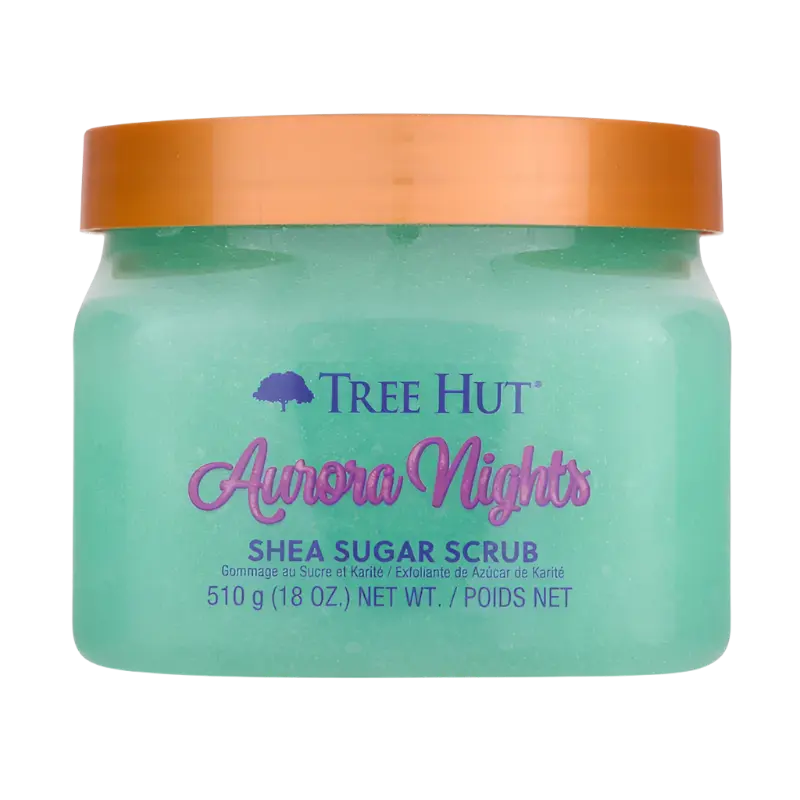 The Tree Hut Shea Sugar Scrub Aurora Nights is the ultimate cozy vibe in the shower. This sugar scrub gently exfoliates your skin and reveals a silky glow, while the warm scent of pistachio and toasted marshmallow wraps around you. Perfect for a self-care moment on a cold evening – or anytime you could use a little warmth!