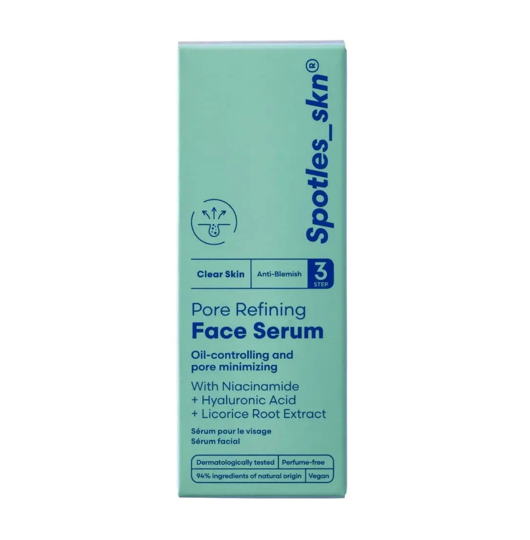 The Spotles Skn Pore Refining Face Serum is your secret weapon against visible pores, redness and blemishes. Specially developed for blemish-prone skin that needs extra balance and refinement.