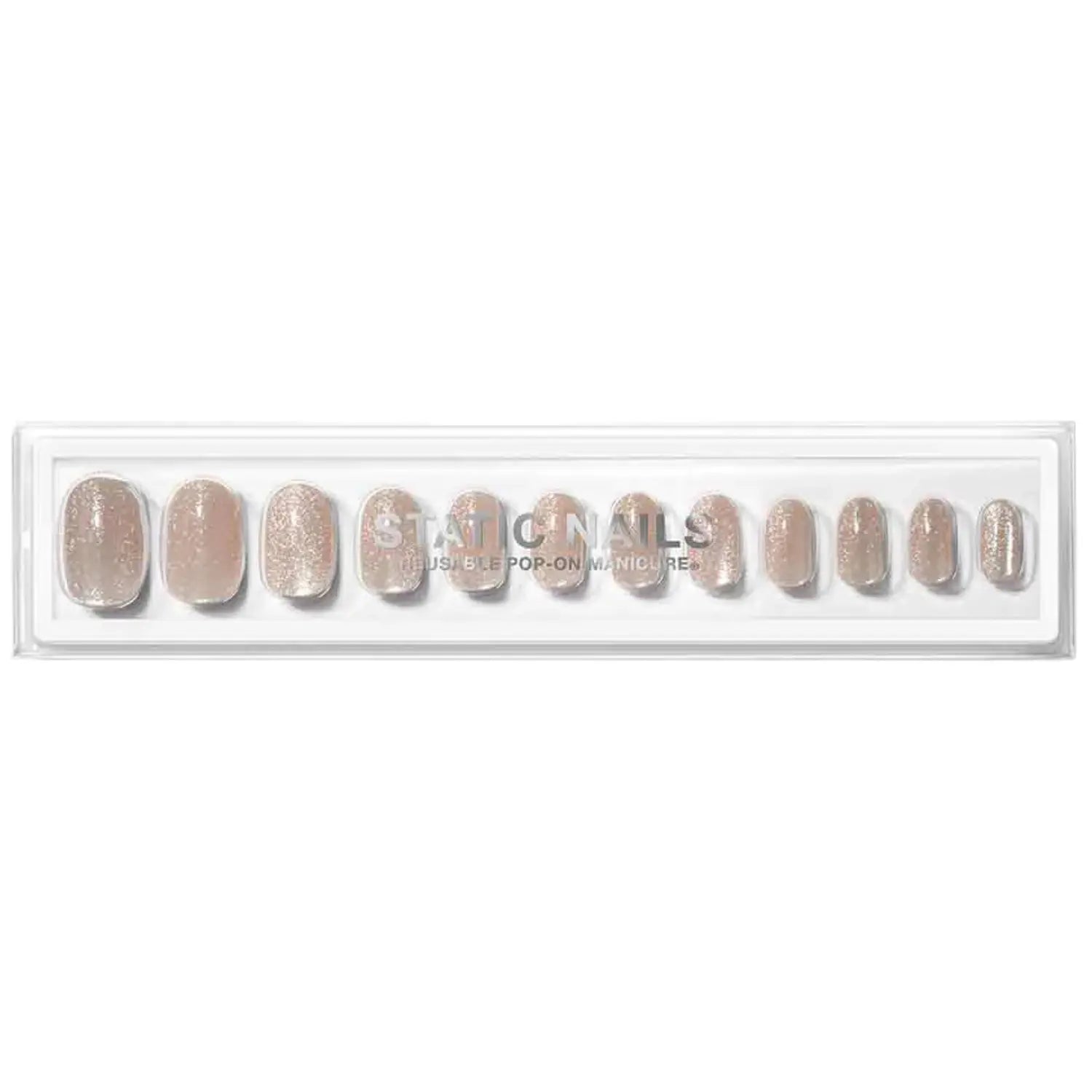 The Static Nails Reusable Pop-On Manicure Pops For Champagne Velvet Round is your go-to for a luxurious, soft, and stylish nail look: no salon visit required. These like-acrylic pop-on nails feature a chic velvet champagne shade and round shape for a natural-looking, non-damaging manicure in just seconds.