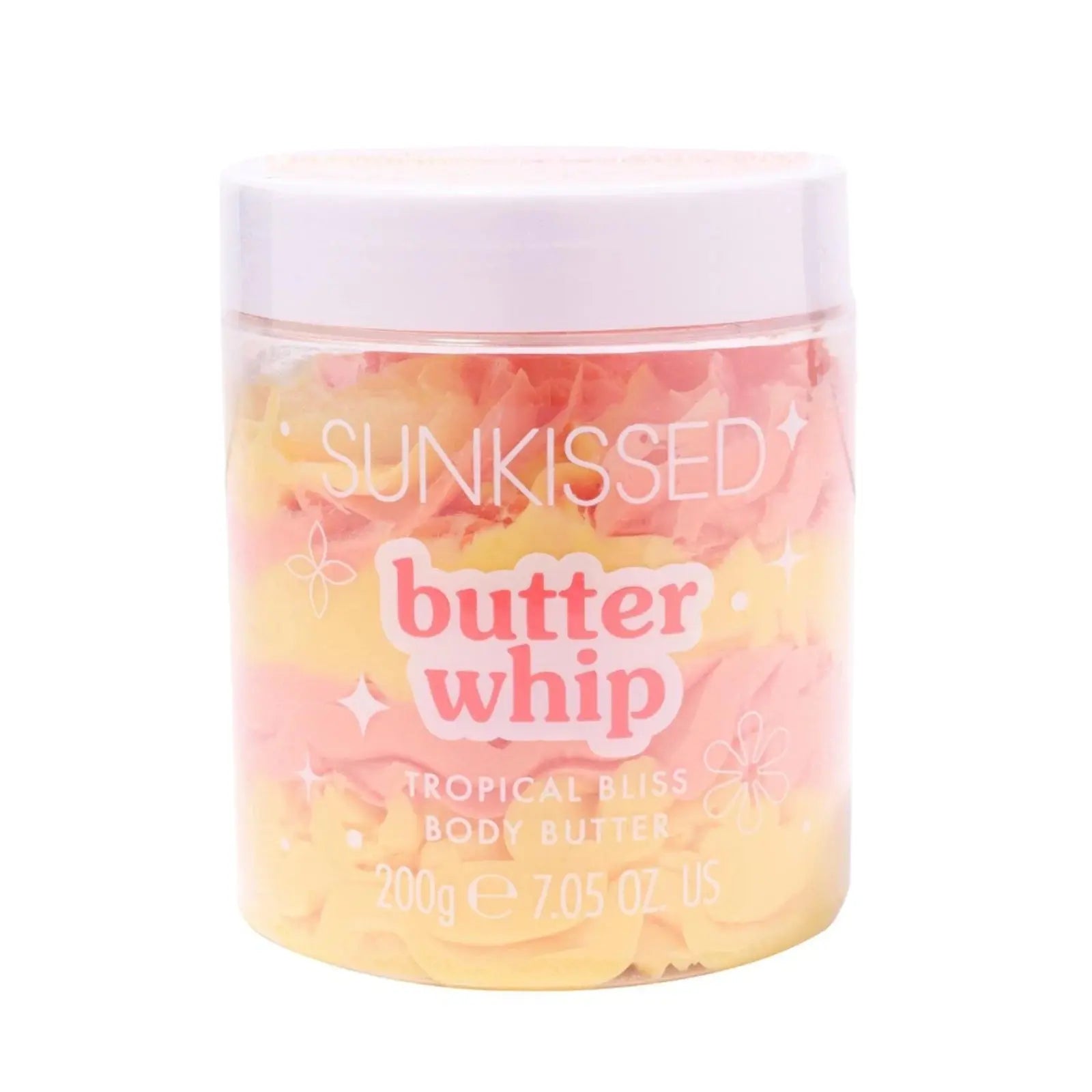 The Sunkissed Butter Whip Tropical Bliss is a tropical treat for your skin! This creamy whipped body butter melts like a soft cloud onto your skin and delivers intense hydration without a sticky feel. The delicious Tropical Bliss scent transports you to a sun-soaked island filled with coconuts, exotic fruits, and endless summer vibes.