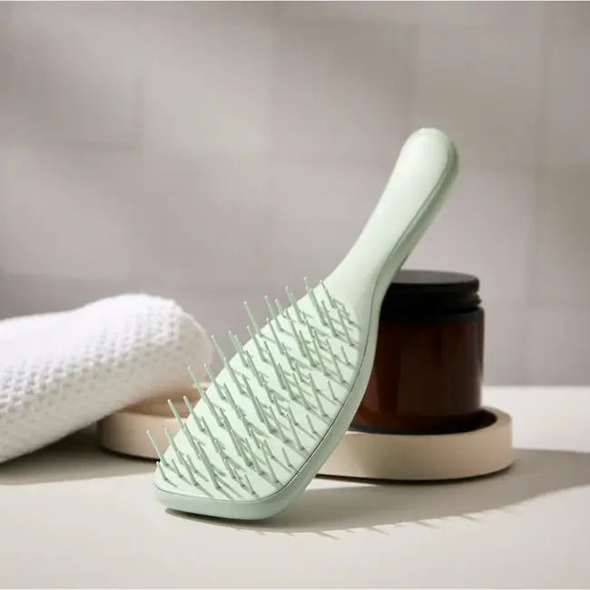 The Tangle Teezer Ultimate Detangler Extra Gentle Eucalyptus is the brush for anyone with fine, fragile, or sensitive hair. Dealing with hair loss or afraid to brush your hair? This brush is specially designed to be extremely gentle on your strands without compromising detangling power. Ideal for use on wet or dry hair – no tugging or breakage!