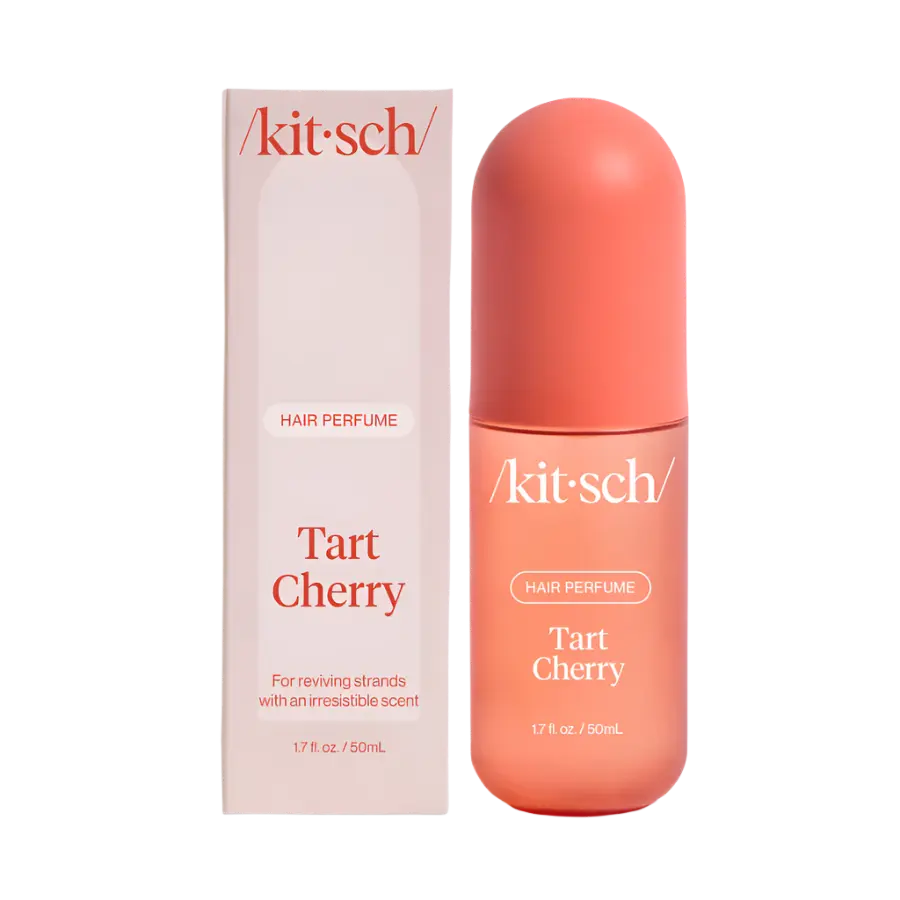 The Kitsch Tart Cherry Hair Perfume is your new secret weapon for fresh-smelling hair between washes. This fruity gourmand scent reminds you of a sunny picnic with your besties: juicy black cherries, playful florals, and a touch of warm vanilla. It's your go-to fragrance in a convenient spray!
