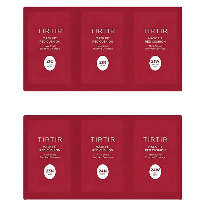 Discover your perfect shade with the TIRTIR Mask Fit Red Cushion 6 Shade Trial Kit. This trial kit is ideal if you are not sure which shade of the popular cushion foundation suits you best. The kit contains different shades, so you can experiment and find the perfect match for your skin!