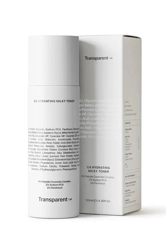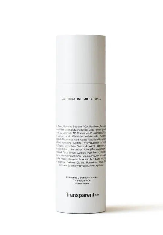 The Transparent Lab C4 Hydrating Milky Toner is your new go-to when your skin is craving hydration and care. This gentle, milky toner is not just a toner: it's a 2-in-1 powerhouse that combines the freshness of a toner with the strength of a serum. Perfect for those looking for a quick and effective step in their routine with maximum results.