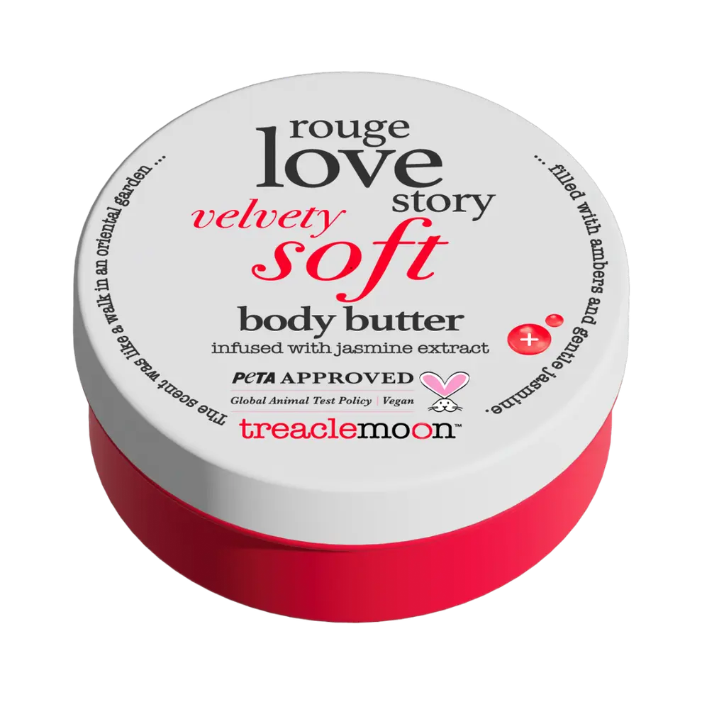 The Treaclemoon Rouge Flower Story Body Butter is an intensely nourishing body butter with a delightful floral scent that leaves the skin soft, supple, and glowing. This rich formula is suitable for all skin types and feels luxuriously smooth on the skin. The combination of Macadamia Oil and Pro Vitamin B5 deeply nourishes, softens rough areas, and gives a healthy, natural glow.