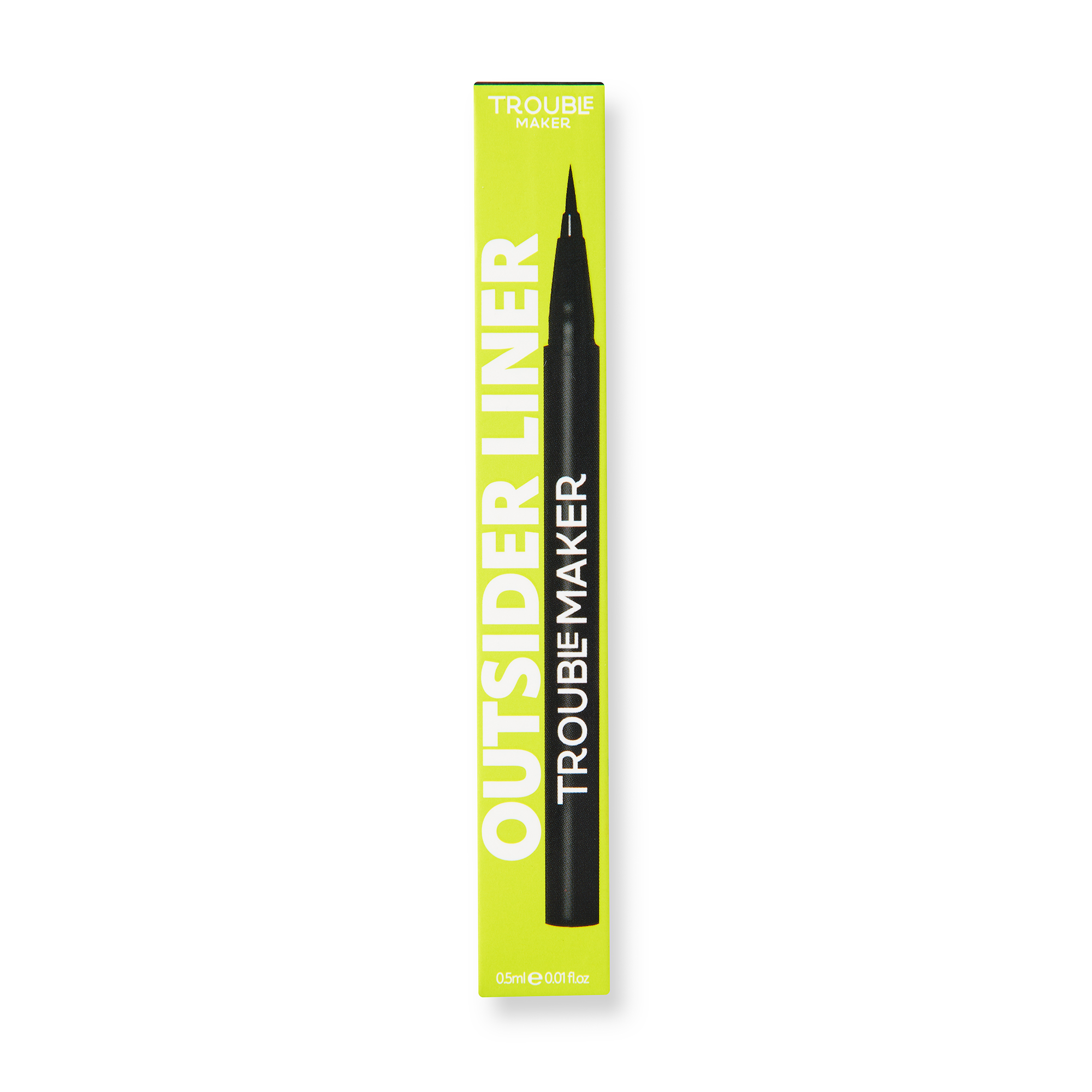 The Trouble Maker Outsider Liquid Eyeliner Pen Black is your new go-to for that perfect, sharp eyeliner look, whether you're going for a classic wing or a bold graphic line. With its ultra-precise felt tip, you can draw a clean line effortlessly, no fuss required.