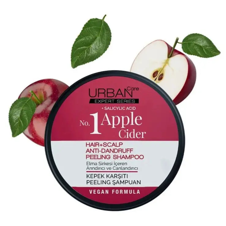 The Urban Care No:3 Apple Cider Peeling Shampoo is a powerful exfoliating anti-dandruff treatment that deeply cleanses and restores your scalp. This unique peeling shampoo is enriched with apple cider vinegar, salicylic acid, and natural sea crystals to effectively tackle dandruff, flakes, and buildup – ideal for irritated or sensitive scalps.