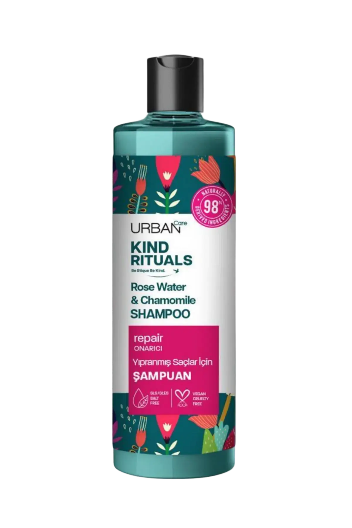 The Urban Care Kind Rituals Rose Water Chamomile Shampoo is the gentle powerhouse for damaged hair. This caring shampoo is packed with rose water and chamomile extracts rich in vitamins and minerals. The result? A clean, fresh scalp and shiny hair that looks and feels healthy!
