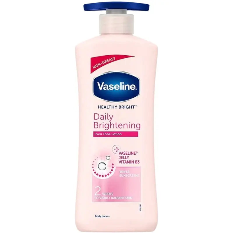 Vaseline Body Lotion Daily Brightening 600 ml is a nourishing body lotion that helps restore the skin’s natural glow. The light, fast-absorbing formula provides deep hydration and delivers visibly brighter, healthier skin within two weeks. With micro-droplets of Vaseline® Jelly, this lotion helps repair the skin by offering long-lasting moisture, eliminating dry patches and leaving skin soft and smooth.