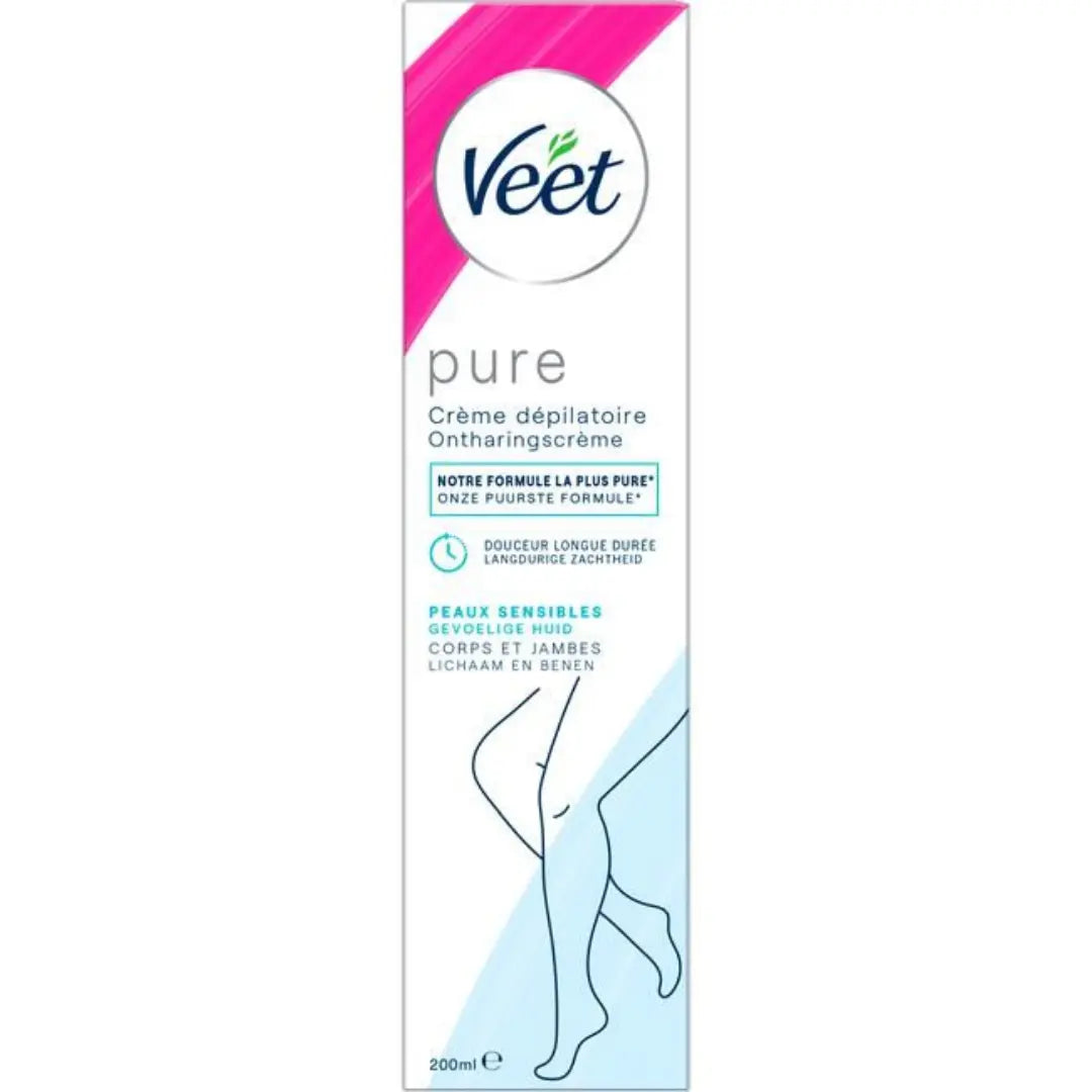 The Veet Hair Removal Creme Sensitive Skin 200 ml is specially developed for anyone with sensitive skin who wants to remove unwanted hair gently and effectively. This Minima formula contains less than 35% chemical ingredients, making it milder than many other depilatory creams. Ideal for use on your legs, arms, underarms, and bikini line.