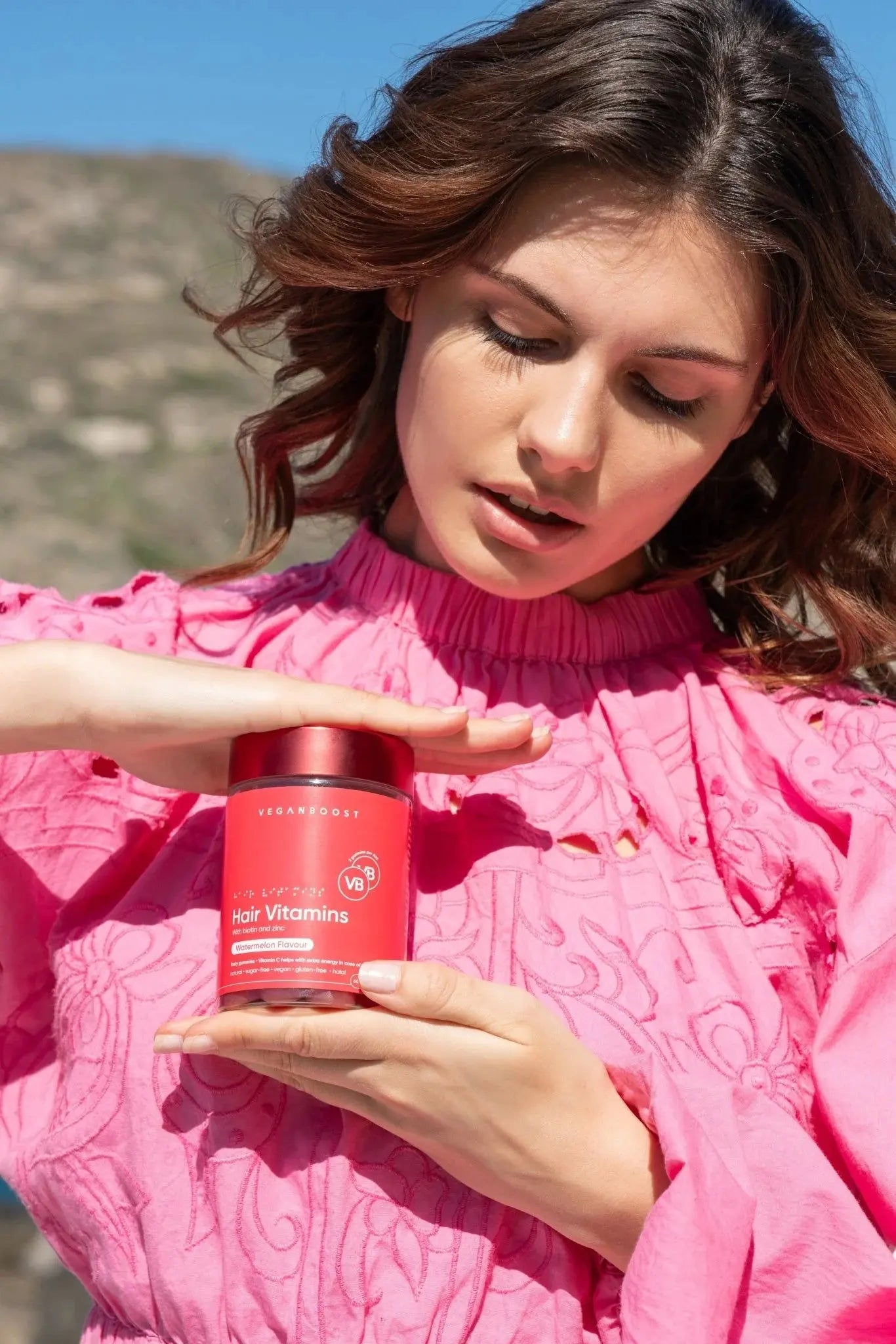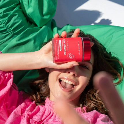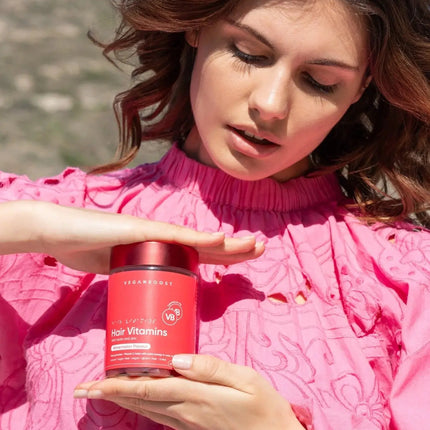 The Veganboost Hair Vitamins Watermelon Gummies are vegan hair vitamins that taste deliciously like sweet, juicy watermelon. These chewable vitamins contain essential ingredients such as biotin, vitamin D and folic acid, so you get the right nutrients every day. The result is long, shiny locks! You will also notice that your hair breaks less quickly and that split ends are reduced.