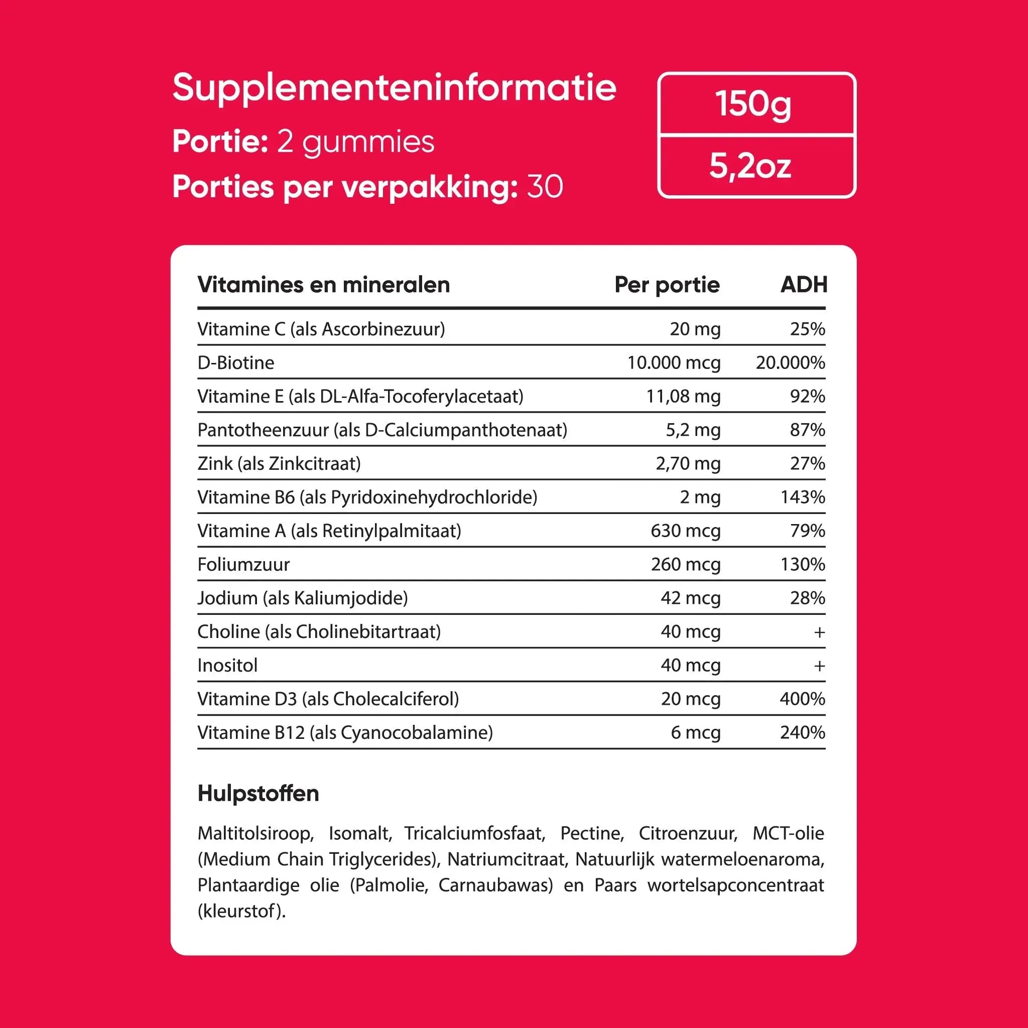 Besides the fact that these gummies are good for your hair, they will also make your nails and skin happy! Would you like healthier hair, but do you think most vitamins taste and smell bad? Then search no longer! These red gummies have a deliciously sweet taste and are shaped like a bear, cute!