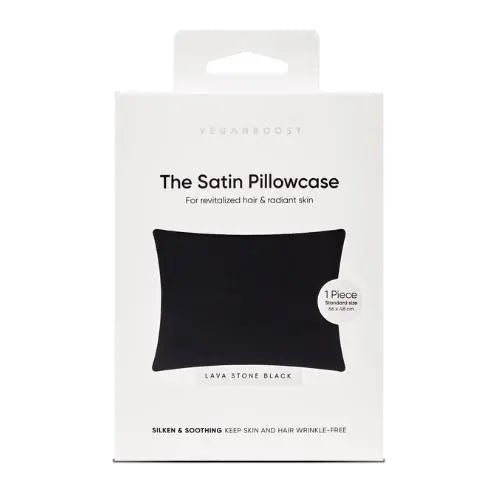 Veganboost Satin Pillowcase Lava Stone Black is the must-have for lovers of luxury and comfort. This cushion cover, made from vegan satin, is not only beautiful to the eye, but also a must-have for your hair and skin.