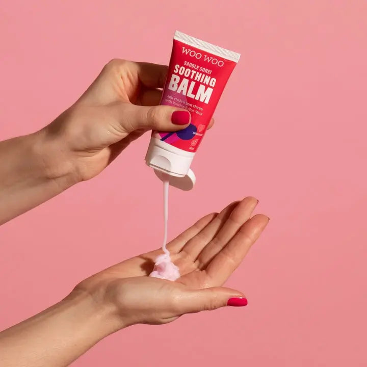 The WooWoo Saddle Sore! Soothing Balm is your handbag must-have this summer! This balm protects your skin from chafing and helps to soothe and heal existing chafed areas. The formula contains natural ingredients and calms and relieves irritated skin with chamomile, rosehip oil, and aloe vera.