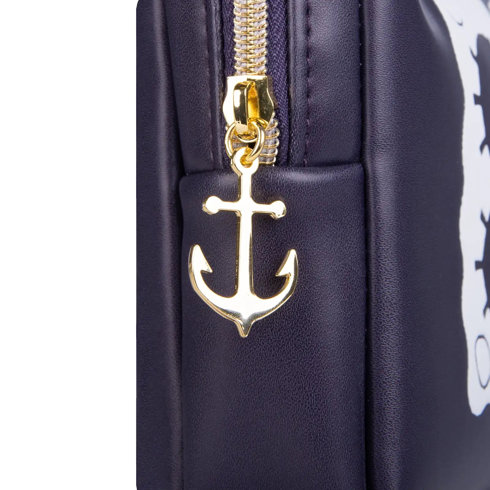 The interior is lined with luxurious satin and finished with a SpongeBob-inspired print that brings a smile every time you open it. The anchor-shaped zipper pendant completes the look. Perfect for storing your favorite products, on-the-go touch-ups, or as a standout piece in your collection.