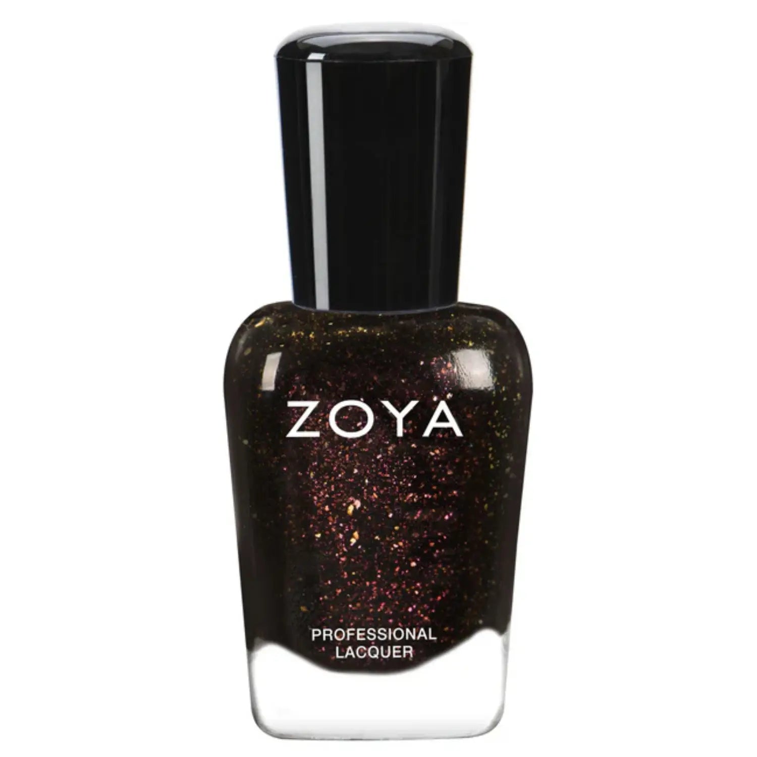 Zoya Nail Polish Lilith is an absolute showstopper that perfectly balances elegance and edge. This wearable black shade is anything but basic: rose gold flakes and subtle pink micro-glitters create a layered, multidimensional effect that makes your nails stand out: without overdoing it.